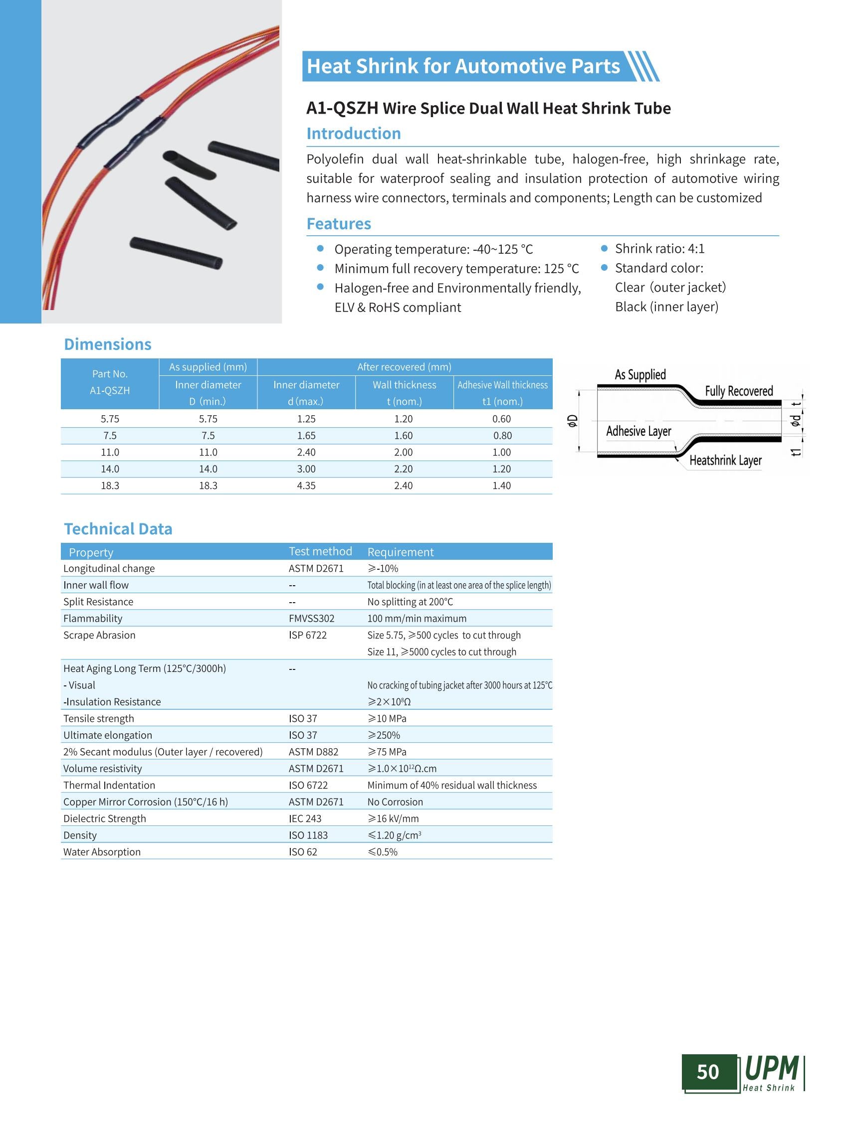 Introduction Polyolefin dual wall heat-shrinkable tube, halogen-free, high shrinkage rate. Suitable for waterproof sealing and insulation protection of automotive wiring harness wire connectors, terminals and components.Length can be...
