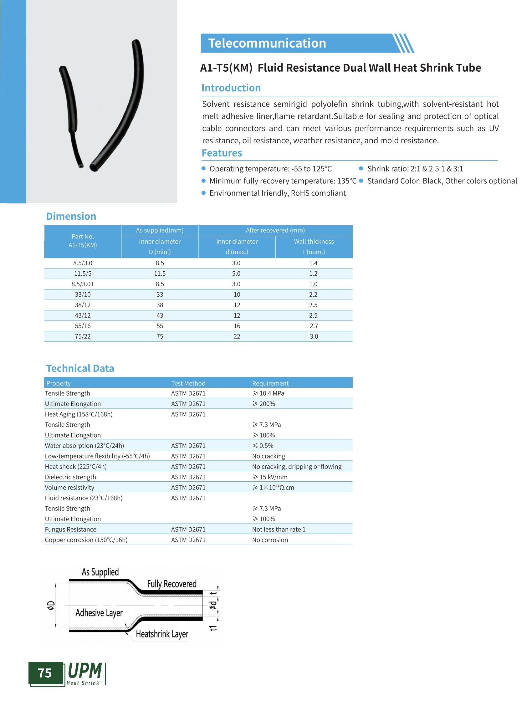 A1-T5(KM) Fluid Resistance Dual Wall Heat Shrink Tube