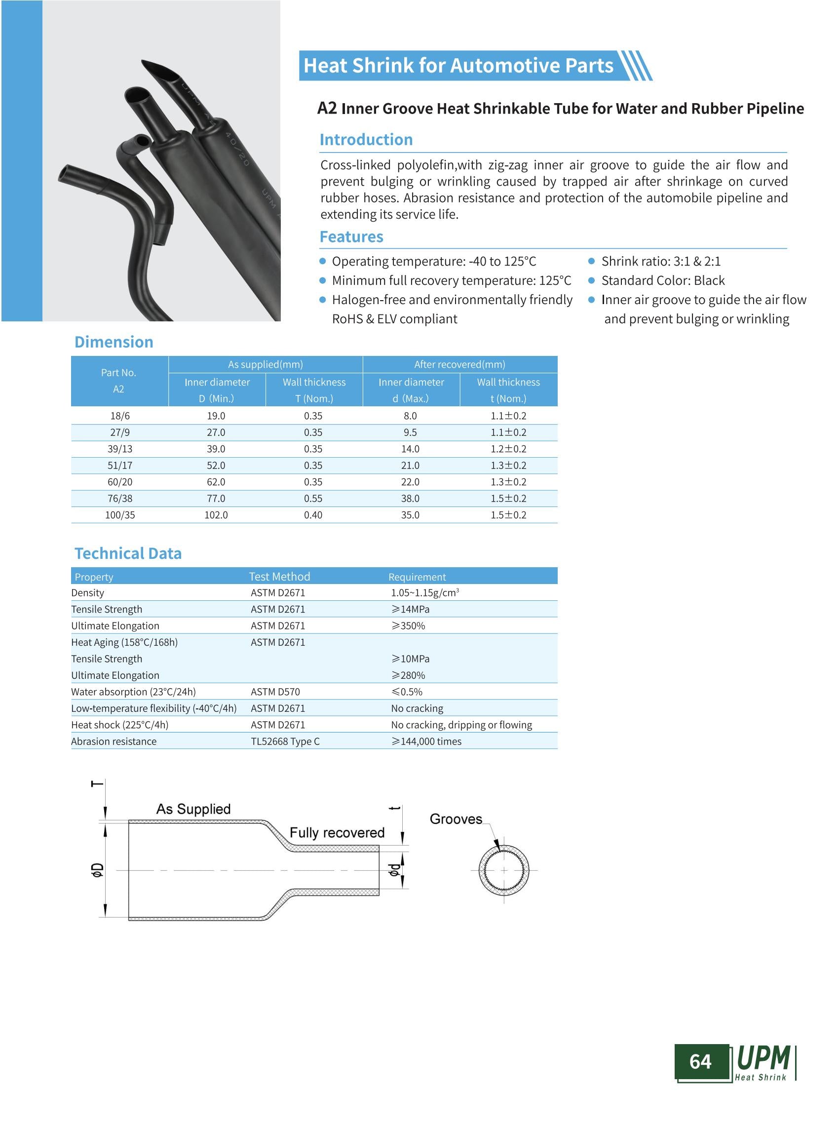 Introduction Cross-linked polyolefin,with zig-zag inner air groove to guide the air flow and prevent bulging or wrinkling caused by trapped air after shrinkage on curved rubber hoses. Abrasion...