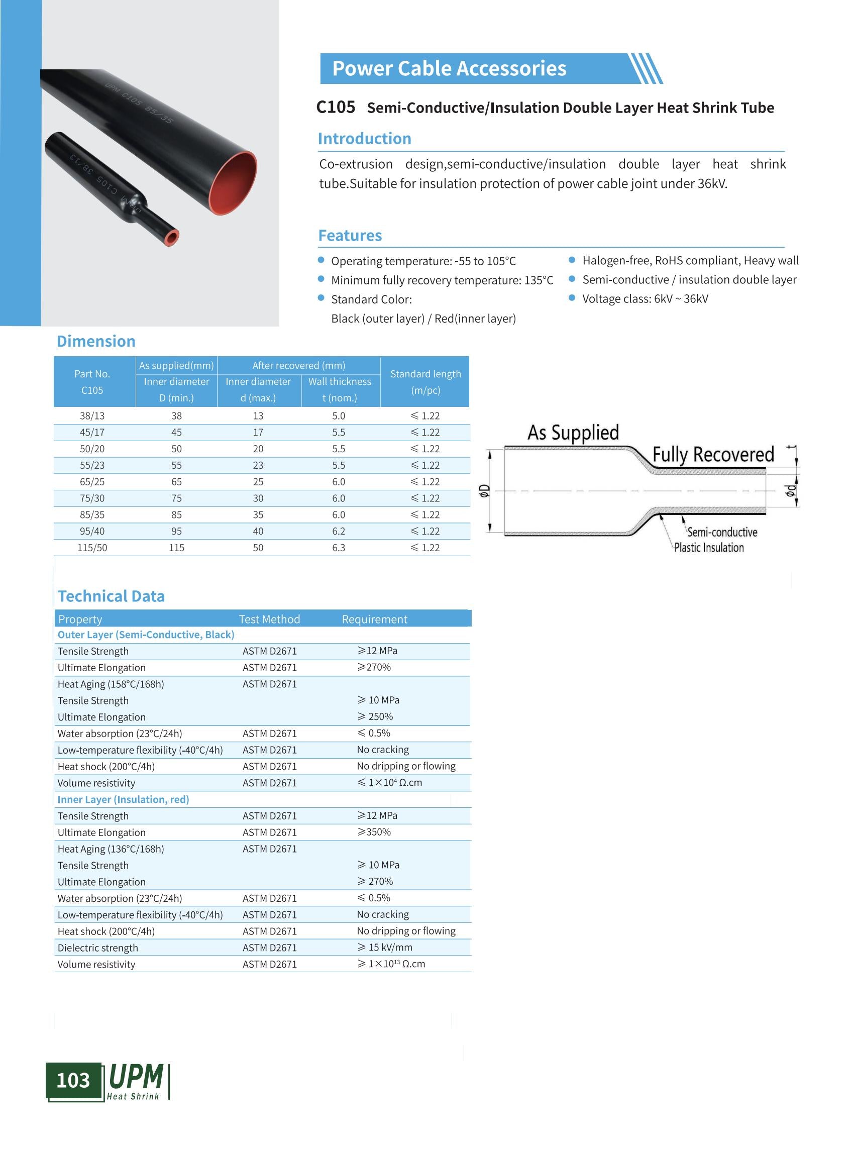C105 Semi-Conductive/Insulation Double Layer Heat Shrink Tube