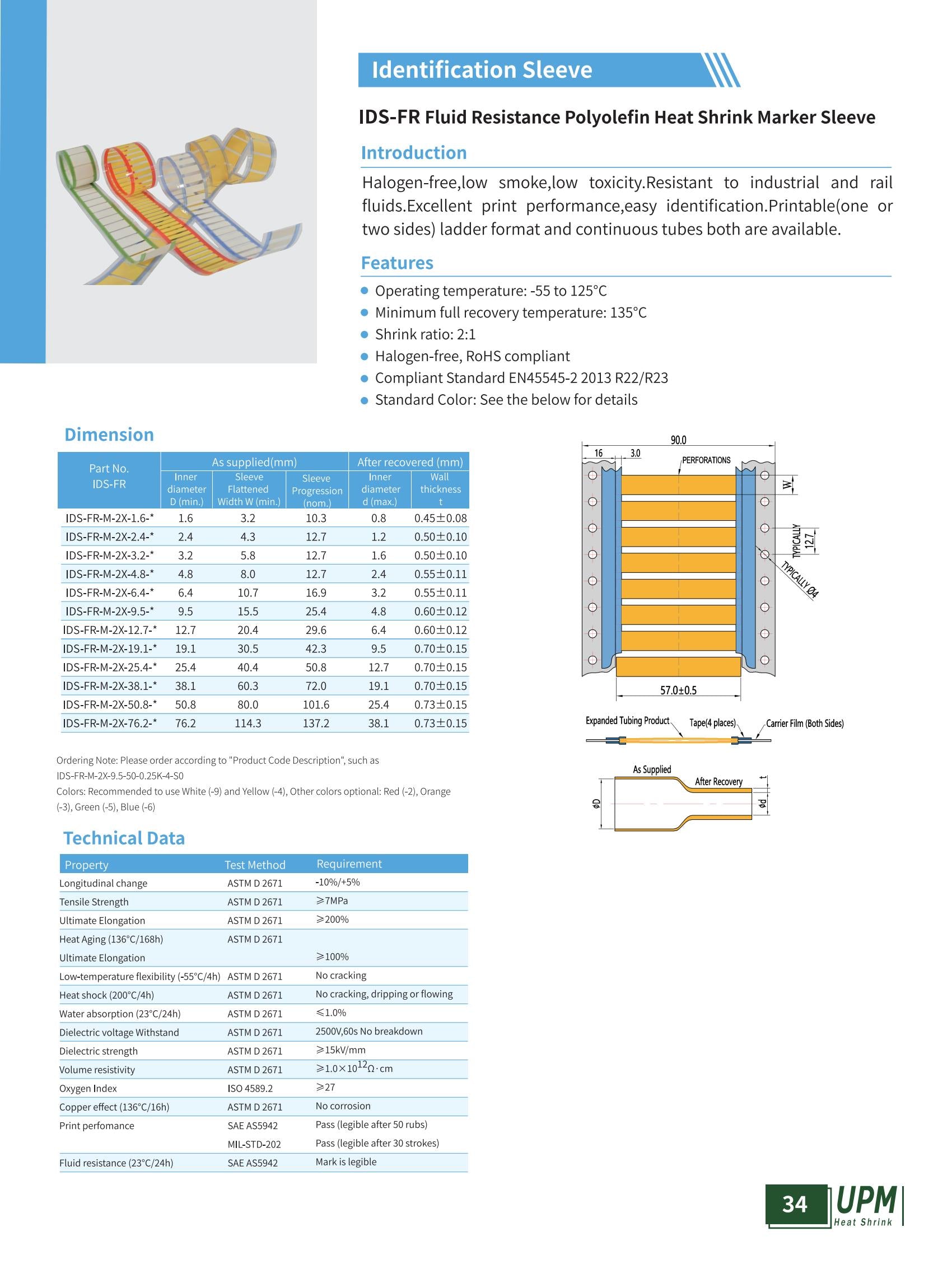 Introduction Halogen-free,low smoke,low toxicity.Resistant to industrial and rail fluids.Excellent print performance,easy identification.Printable(one or two sides) patches and continuous tubes both are available. Features Operating temperature: -55 to 125°C...