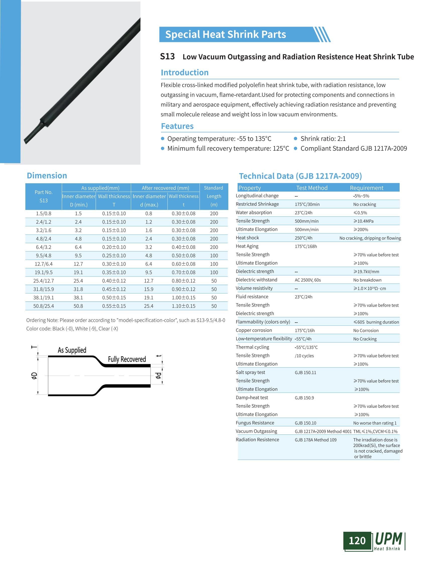 S13 Low Vacuum Outgassing and Radiation Resistance Heat Shrink Tube