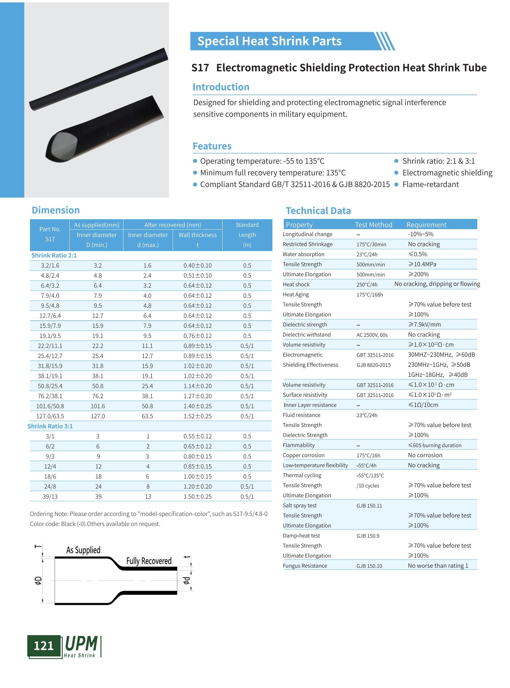 Introduction Designed for shielding and protecting electromagnetic signal interference sensitive components in military equipment. Features Operating temperature: -55 to 135°C Minimum full recovery temperature: 135°C Shrink ratio: 2:1...