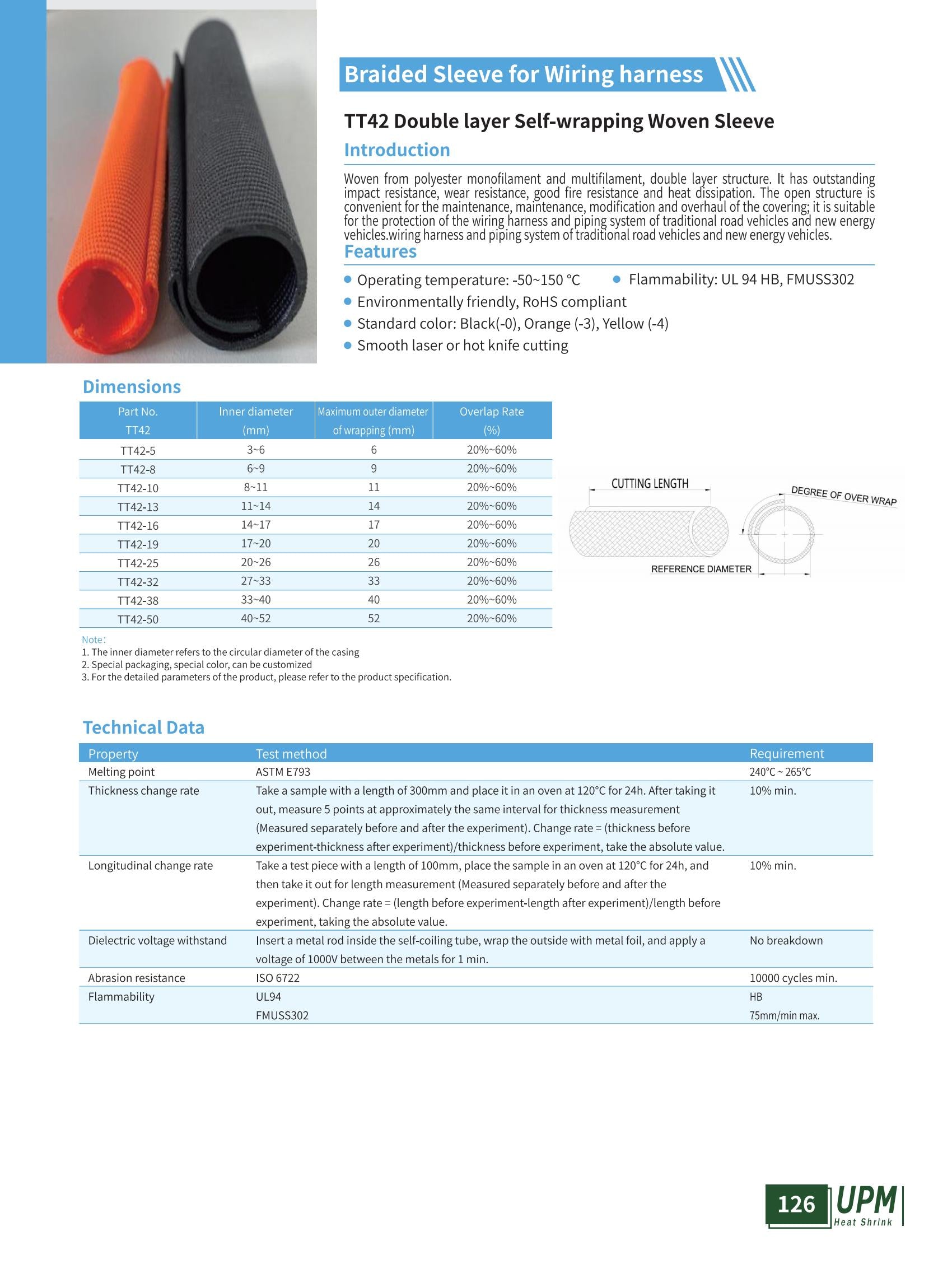 Braided by polyester monofilament and multifilament, double layer structure. It has outstanding impact resistance, wear resistance, good fire resistance and heat dissipation. The open structure is convenient for the maintenance, maintenance, modification and overhaul of the covering; it is suitable for the protection of the wiring harness and piping system of traditional road vehicles and new energy vehicles.