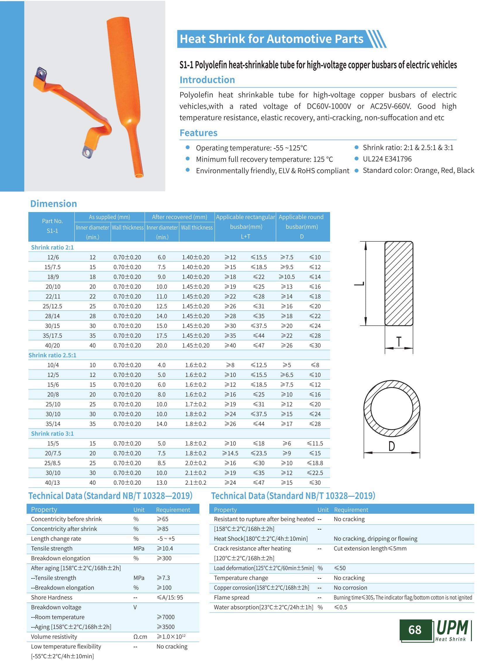 Introduction Polyolefin heat shrinkable tube for high-voltage copper busbars of electric vehicles,with a rated voltage of DC60V-1000V or AC25V-660V. Excellent high temperature resistance, elastic recovery, anti-cracking and no...